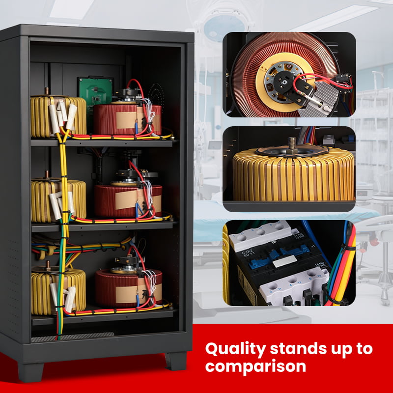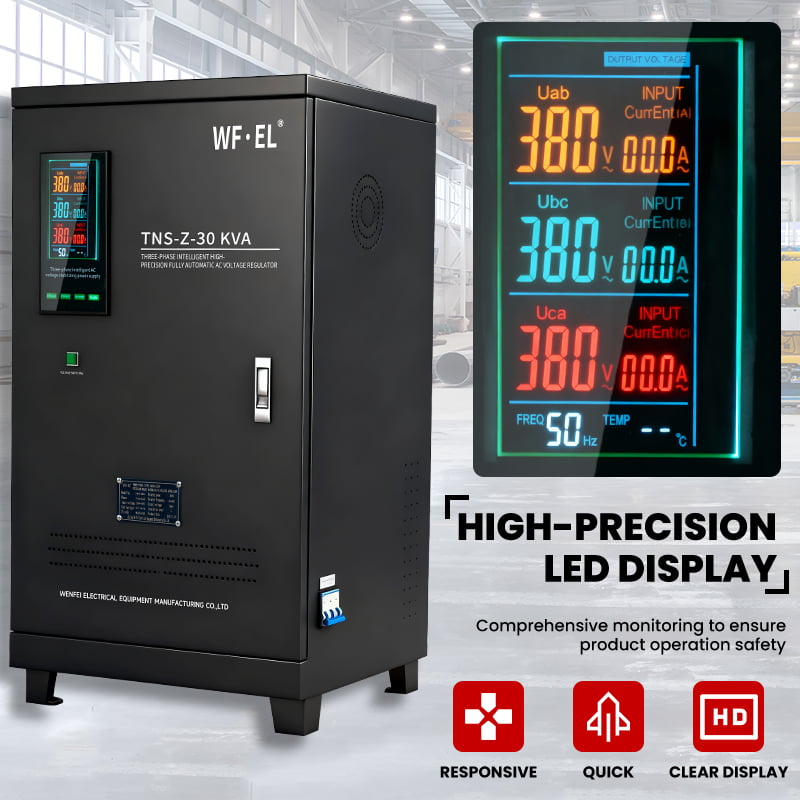 High Precision Voltage Regulation: Stabilizes fluctuating input voltage (260V–430V) to a constant 380V output